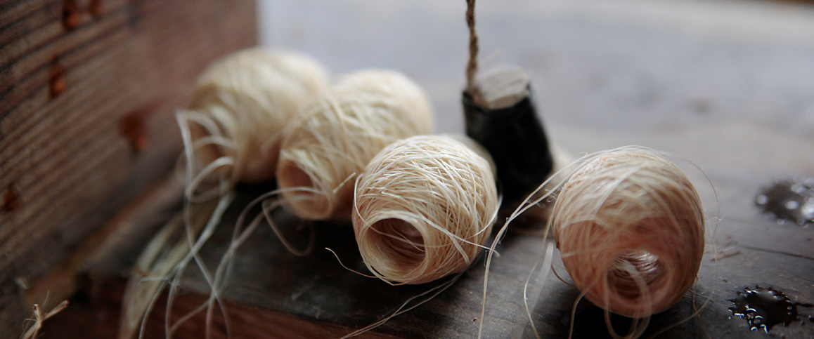 ※昭和前期には国内での手績み手織り麻の製造は困難となり、現在は中国で上記工程を行っています。