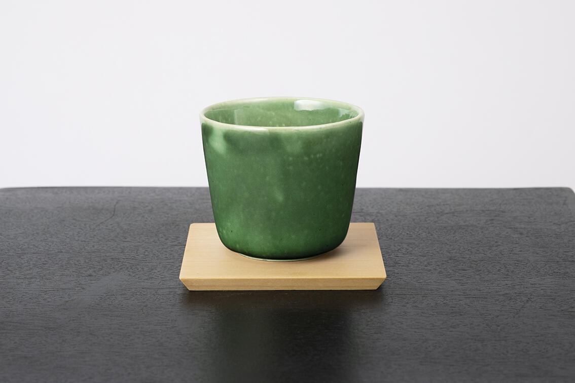 "暮らしの道具"と"茶道文化の入り口"が一度に味わえる大丸心斎橋店だけの、お茶にまつわる道具を取り揃えました。同店限定となるのが、1717年創業「大丸」の象徴であるピーコックレリーフをイメージした煎茶用の湯呑。重ねてしまえる機能的な湯呑に、鮮やかな青緑色を配しました。