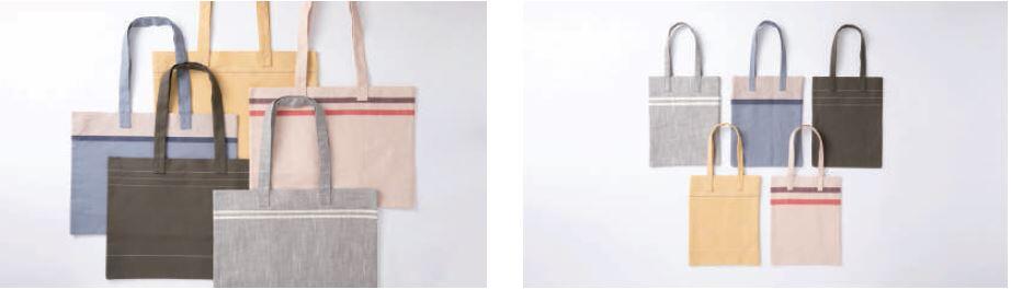 財布やスマートフォン、ちょっとした化粧道具といっしょに出かけられるミニサイズ。シャトル織機の耳を活かした、口部分のすっきりしたデザインが特徴です。旅行の際のバッグインバッグにも。(サイズ:高さ25cm、幅20cm、持ち手内周33cm、重さ約27g)