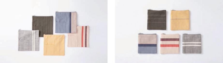 縞の太さや色などの違いで地域性があるほど縞模様にこだわりがあった会津木綿。「会津木綿 青㐂製織所」ではベースとなった織元の得意とした、無地に太い縞模様を生かし、暮らしに取り入れやすく表現しました。「中川政七商店 渋谷店」先行発売の3色(よもぎ、くるみ、あい)に加え、全国デビュー時にはきはだ、ぎんねずの計5色で展開します。