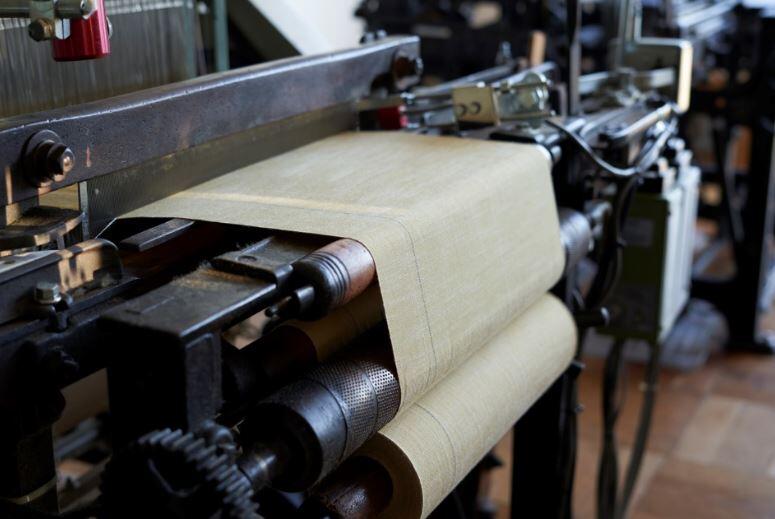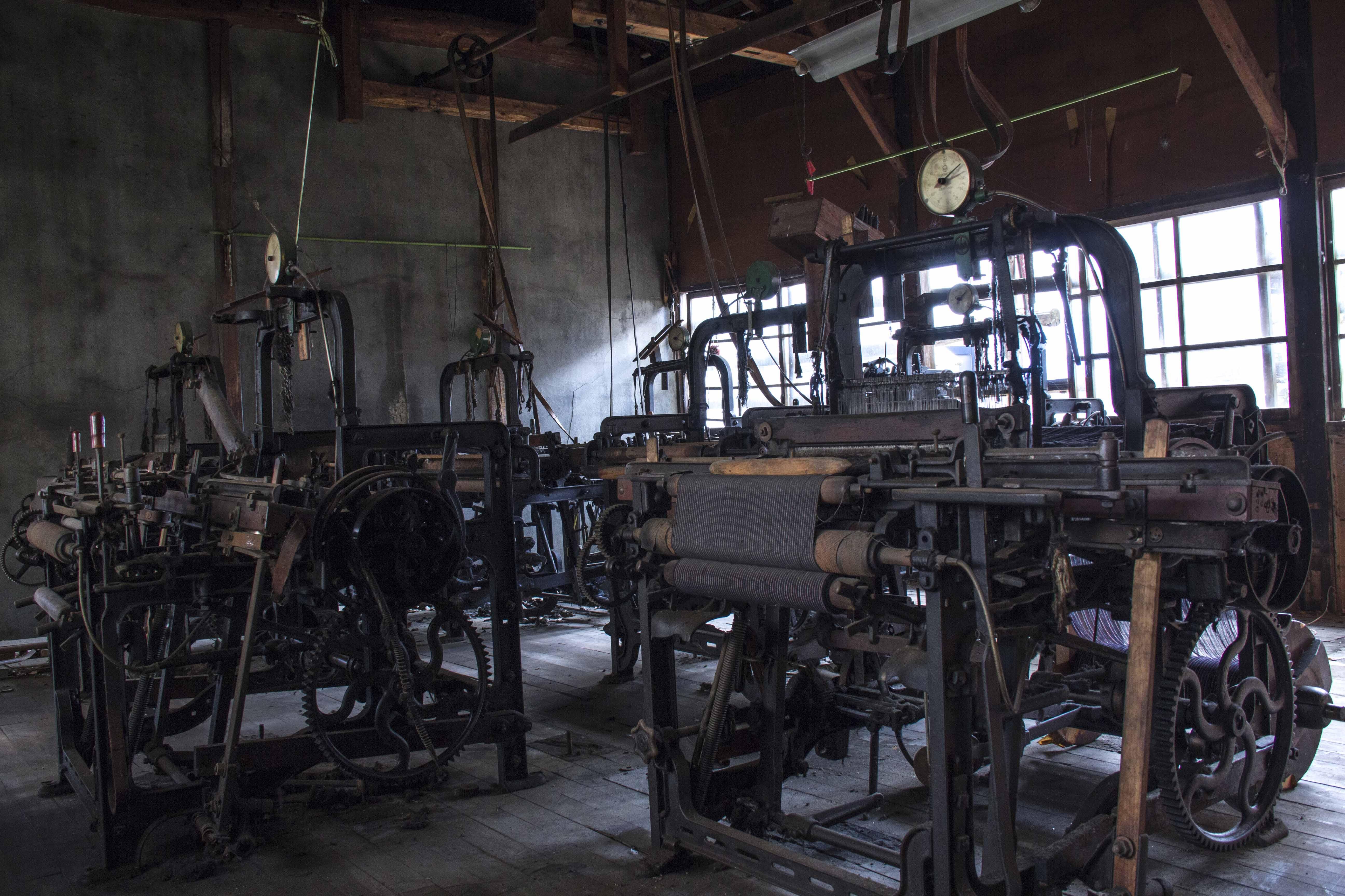 1日に織れる生地は、約12m。地元に眠っていた100年前のシャトル織機を修理して、一度失われた伝統織りを復活させた希少な布です。ゆっくりと耳まで丁寧に織る平織り生地は、本数を多く設定したタテ糸に、ヨコ糸をしっかり打ち込むことで密度が高く丈夫なのが特徴です。