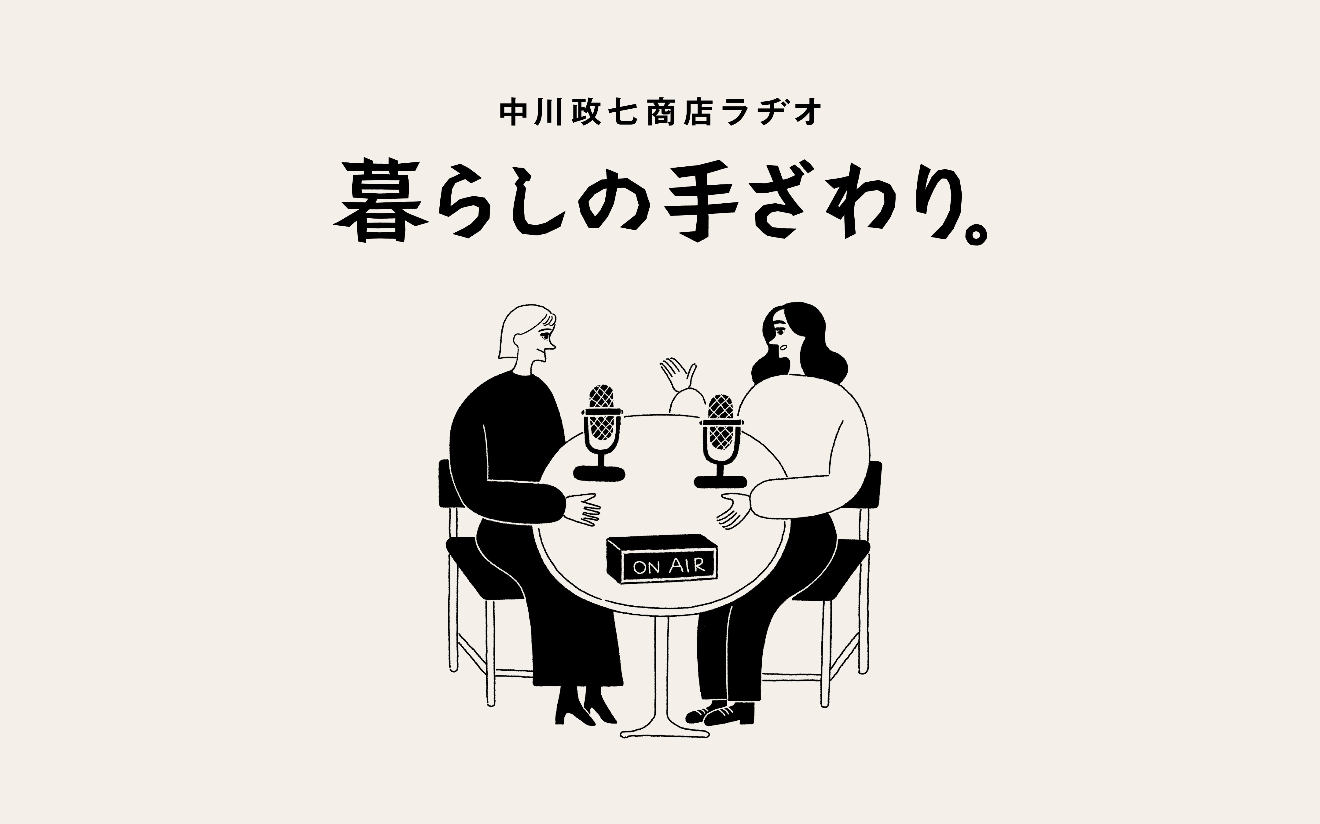 公私ともに仲のいいペアがゲストに登場。中川政七商店の商品がゲストの暮らしの中でどう愛されているのか、どんな暮らしぶりなのかを紐解きます。「色とりどりのふきんは、生活感あるキッチンも可愛く見せてくれるよね」「曲げわっぱにカレーを入れてみると...」など、まるでカフェでの会話をのぞき聴きしているような番組スタイルです。