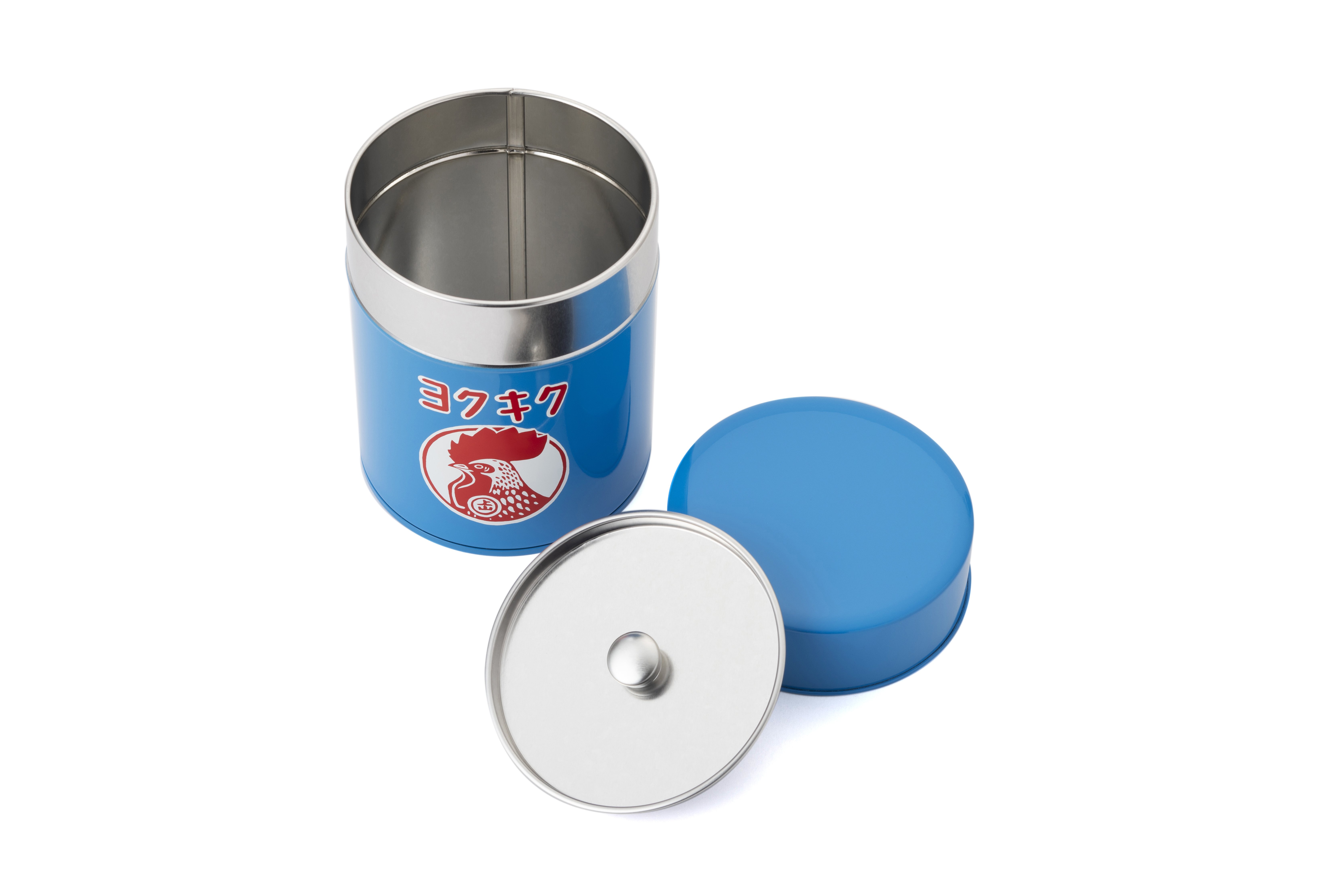 金鳥の夏日本の夏 ブリキ缶 ヨクキク/2,200円 昭和初期によく見られたホーロー看板がモチーフ。手仕事による印刷の微妙なズレに、当時のアナログ感を垣間見ることができます。