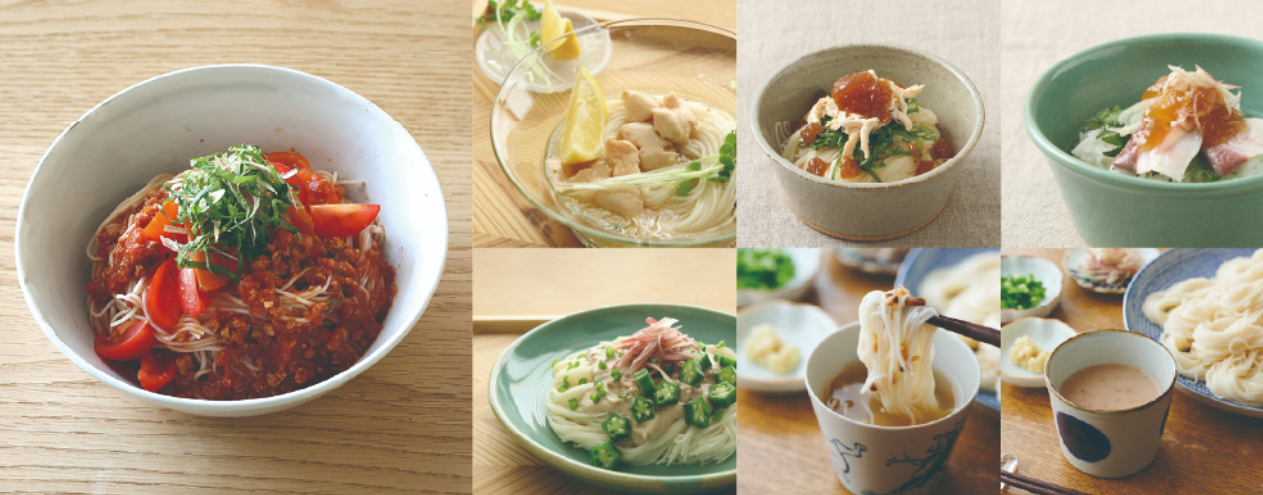 本シリーズの特徴は、素麺にソースをかけるだけという手軽さながら、しっかりと具材が入っていることで満足感のあるひと皿に仕上がること。少し余裕のある日には、さらに"もうひと手間"。カットした野菜や薬味をトッピングすれば、家族が喜ぶ"ごちそう"に大変身。忙しい共働きの家庭の夕食にもおすすめです。また、"もうひと手間"のための道具も充実。薬味を直接かけることができるスライサーをはじめ、食卓にそのまま出せる佇まいのよいおろし小皿など、食卓が豊かになる品々もお届けします。