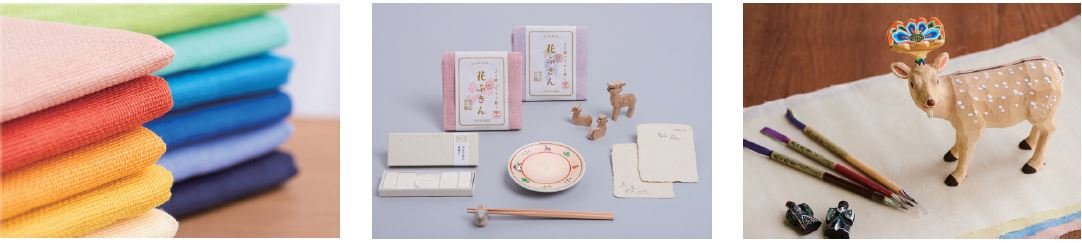 「奈良の伝統工芸・作品」奈良一刀彫、奈良筆をはじめとする伝統工芸や、木工、染織など奈良に根ざして暮らす様々な作家が手掛ける作品も展開。(購入可能)