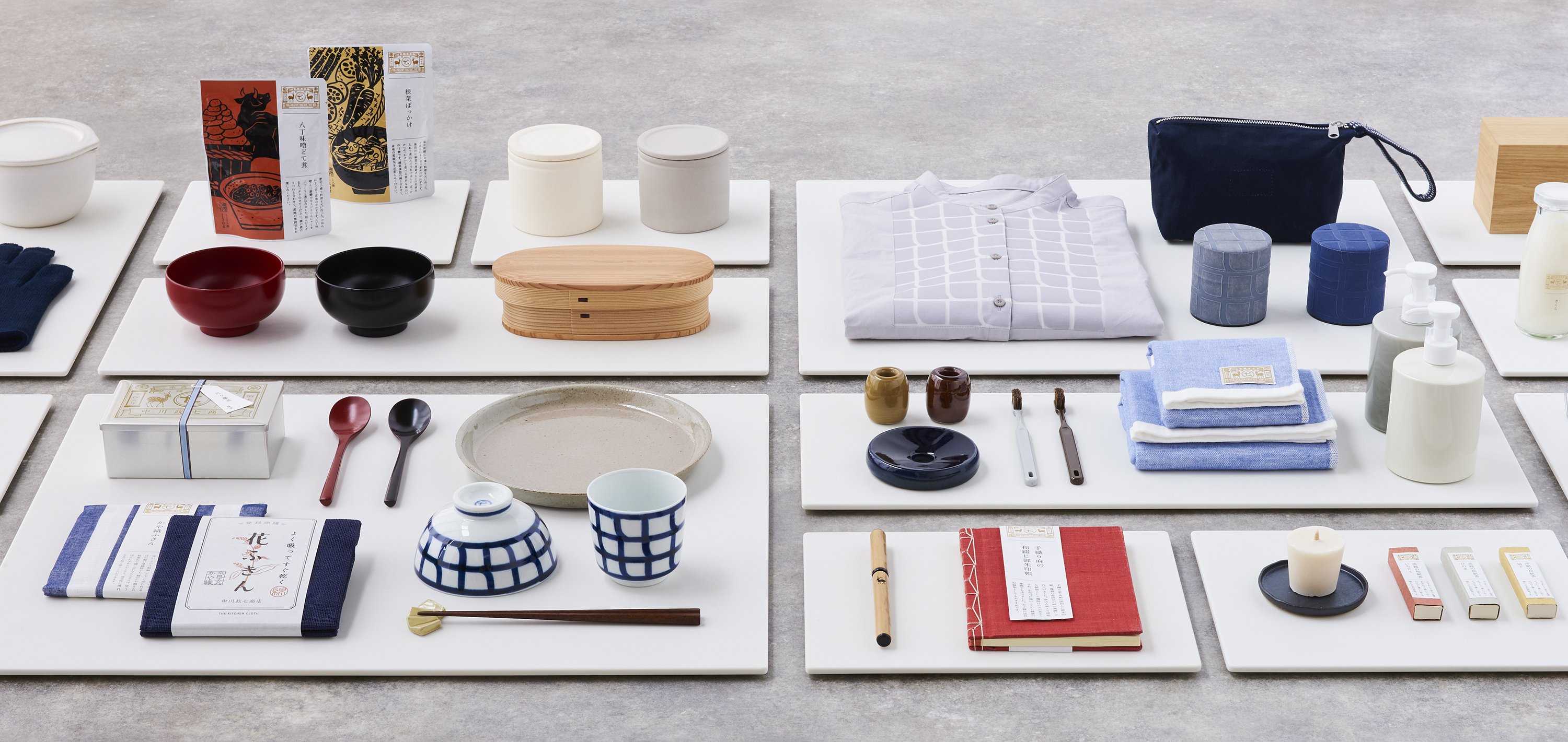 「中川政七商店」の鹿、スペシャルティコーヒー店「猿田彦珈琲」の猿、すき焼き店「㐂つね」の狐。3匹が集う「鹿猿狐ビルヂング」の限定品として、かや織や注染など工芸を活かした暮らしの道具をつくりました。