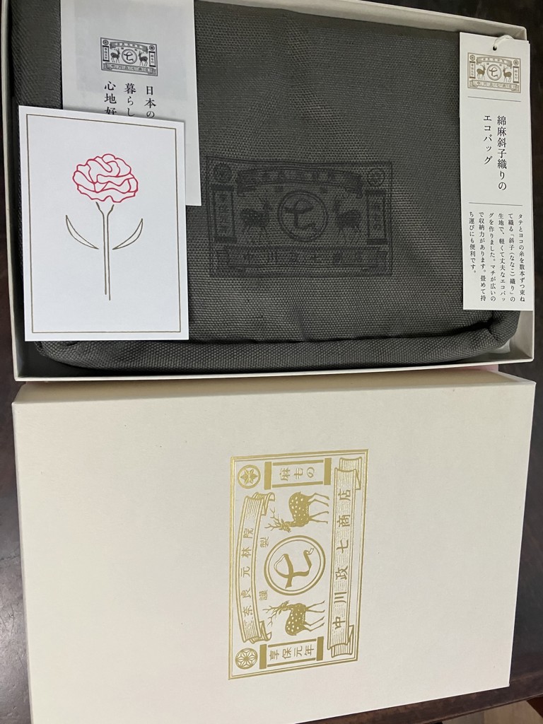 中川政七商店のロゴが生成りなので一番ハッキリとしていてカッコいいです。形も可愛いです。