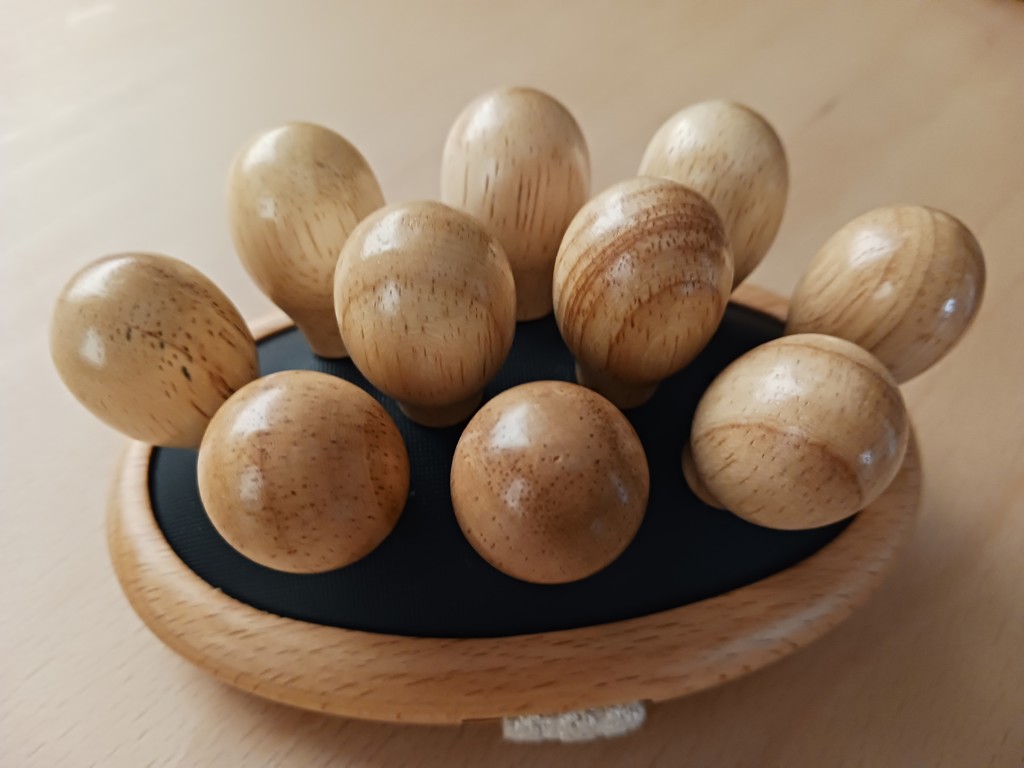 まず、木の肌への感触が癒されます!ローラー式や挟んで転がす物より肌へのフィット感も気持ちいいです!