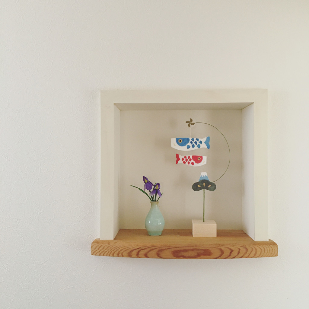 端午の節句には、毎年ベランダに鯉のぼりを揚げて、リビングに飾り馬を飾っていますが、廊下のニッチにも飾れる良いものはないかと探していたところ・・この鯉のぼり置き飾りを見つけました。