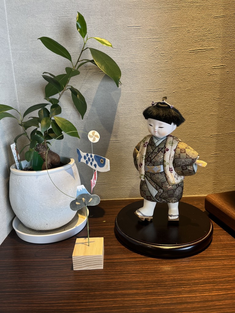 お雛様🎎は娘の物を飾り部屋も賑やか。しかしお雛様が終わると「さてどうしよう?玄関が寂しいけれど」と思います。兜はありますが、玄関を楽しくしたい。そんな時にこの鯉のぼりの置物に出逢いました。小さいけれど玄関を開けたときの風でフワフワと揺れてとっても癒されました!