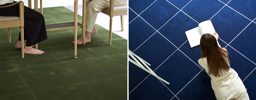 WOOLTILEを手がけるのは、大阪でウールカーペットを専門に製造をし続ける堀田カーペット株式会社。高級ホテルやラグジュアリーブランド店舗等の敷き込みを数多く担っています。WOOLTILEは自ら空間をつくる喜びや楽しみ、そしてカーペットの気持ち良い暮らしが広がることを願っています。