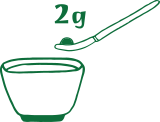抹茶2gを茶碗に入れる。Place the Matcha 2g in the tea bowl.