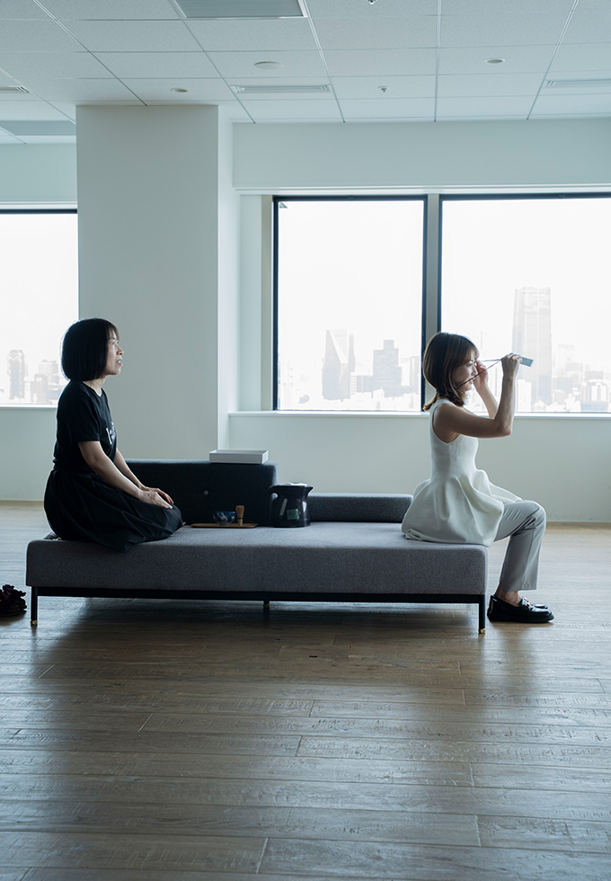 「最初はただ『給湯室でお茶を点てる』ことしか考えていなかったんですが、その流派としての“作法”があった方が面白いというアドバイスをいただいて、IDカードを外したり、冷蔵庫を床の間に見立てたりといったことを付け加えていきました」