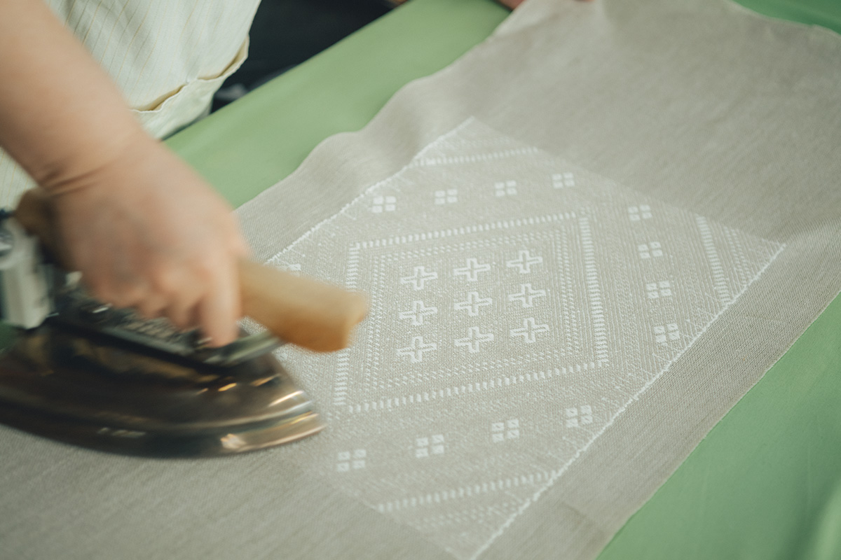 そうして生まれたこぎん刺しの醍醐味は、生地の上を埋め尽くすように施された刺し模様にあります。