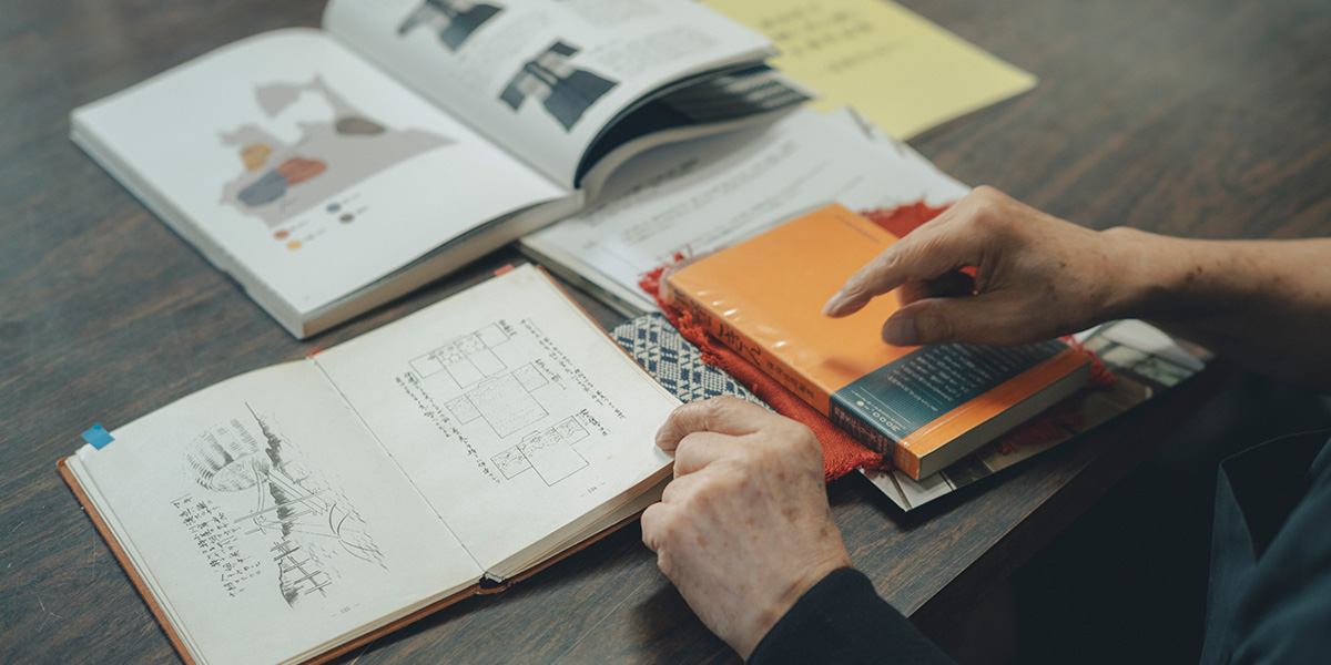 そんな手仕事の妙に目を見張らせ、昔の着物に刺されていた文様を写し取りながら、オリジナルの図案を描いていただきました。