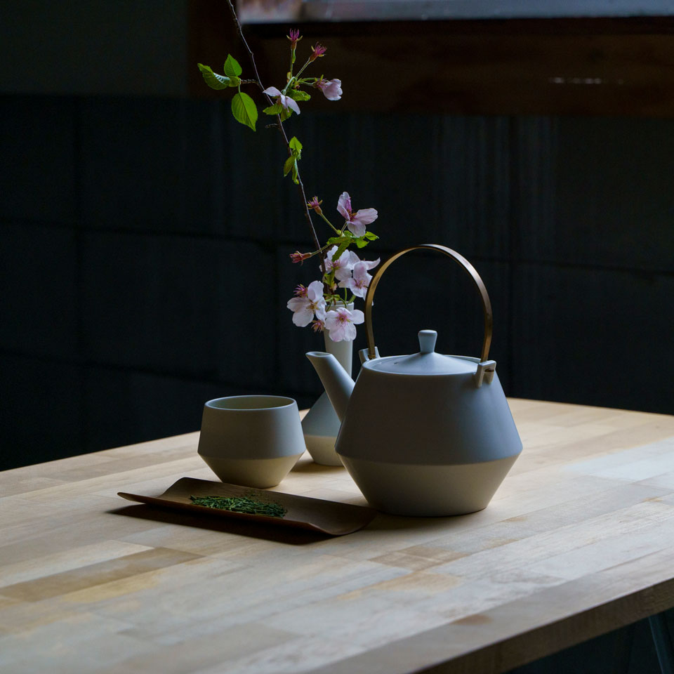 お茶の良さを再認識するために、現代の暮らしに合わせデザインをリファインした茶器。 本製品のデザインの肝である土瓶本体の中腹で切り替わるエッジは、日本の東北地方で作られる鉄瓶などで古くから見られる形を引用しています。