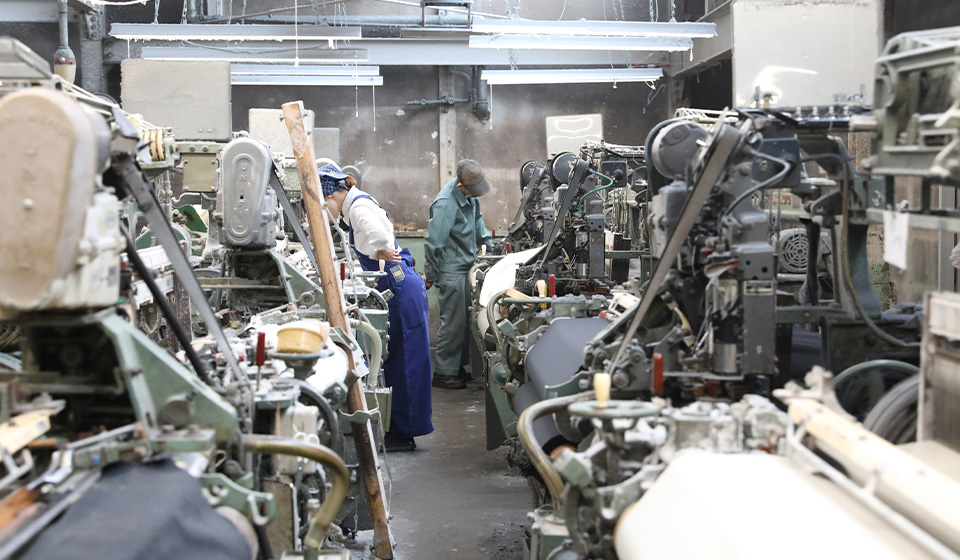 世界的にも希少な、旧式の「シャトル織機」で織る生地は、通常の20~30倍の時間をかけて、細い糸をゆっくりと織りあげる風合い豊かな超高密度の生地。