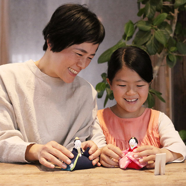 衣装の組み合わせや表情づくりを自由に楽しみながら、自分の手でひな人形を仕立てるワークショップです。大人の方もお子様もご参加いただけ、親子で一緒につくるのもおすすめ。桃の節句にまつわる冊子付きで、歳時記を学びながら楽しめます。