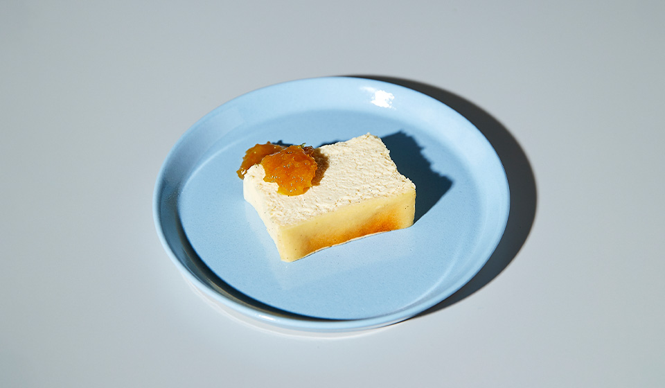 濃厚かつ軽やかな、シルクのような滑らかさのocasiがつくるチーズケーキ。奈良県産「大和橘」のジャムを合わせていただきます。