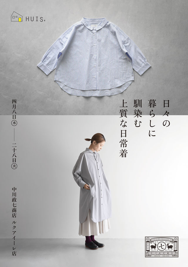 HUIS(ハウス)は、「日々の暮らしに馴染む上質な日常着」をコンセプトに、伝統ある遠州地方で生産される高品質な生地から、すべての商品を制作しているアパレルブランドです。