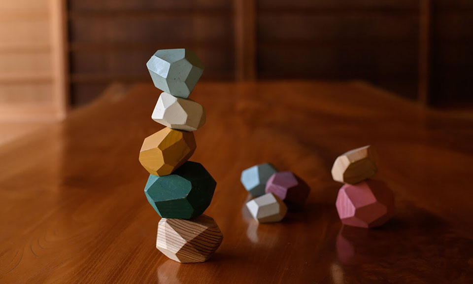 オリジナルの積み木「tumi-isi」の色ぬりワークショップ。