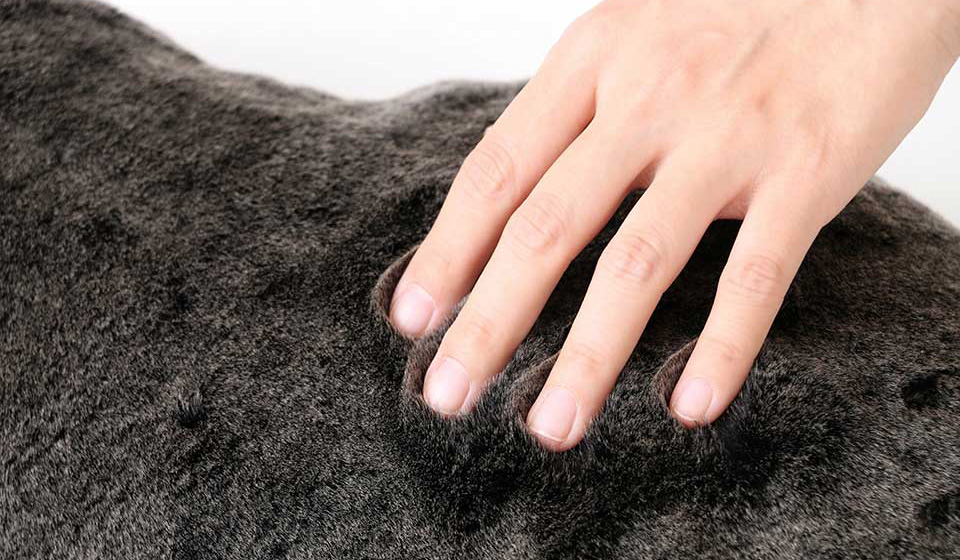 そんな高野口の、フェイクファーの再現力の高さで生まれたのがこの猫クッションです。実は毛色ごとに触り心地も違います。