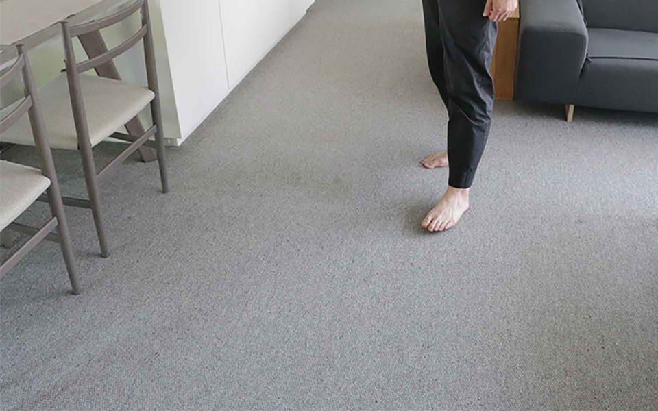 素足で歩くと、ふかふかしてハリ感があり、踏み心地がよく、足を押し上げてくれる感じです。足の裏ってこんなに感覚があったんだ、と驚きました。冷え性の妻も喜んでいました。