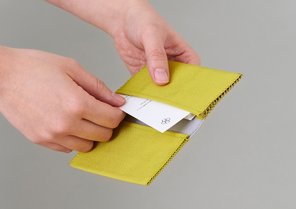 およそ四千年の歴史を誇る、西陣織最古の織物「綴織」。 最高峰の美術織物としておめでたい席や晴れ舞台を華やかに彩ってきました。 私達はこれまでの大切にされてきた日本の文化や、職人の技術を受け継ぎ、 「大切な時」に寄り添う品々を紡いでゆきます。名刺入れって、気心がしれた間柄では登場しません。一番最初の印象を決めるものだから、できれば「こういう者です」というイメージを託したい。でもなかなか、自分らしいものを探すのは大変です。