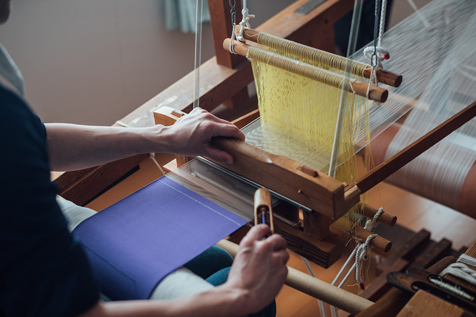 ブランド名のsufutoは漢字で書くと「寿布と」。着物の帯や結納に使う掛けふくさ、祭礼用の幕地など、古くから「最高級の縁起の良い布」とされてきた「綴織 (つづれおり)」を活かしたプロダクトブランドです。この綴織は4000年もの歴史がある織物ですが、現在滋賀県で織れるのは、唯一清原織物さんだけです。